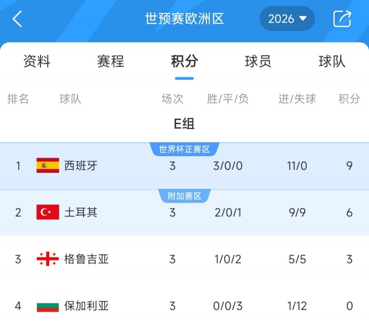 世初赛欧洲区E组积分榜