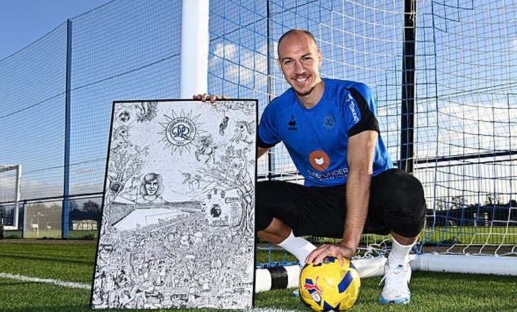 弗雷于2024年1月从安特卫普加盟女王公园巡游者,在领先几个月里,他用玄色细线笔在一幅大画布上重现了他在新城市看到的怡悦。“我不祥情它最终会酿成什么表情,但我告诉我方,每天花10到20分钟在这上头,总计可能花了大致50个小时。”画中有荷兰公园的树木和松鼠,街头的东谈主们和谢泼德市集,还有洛夫特斯路球场,前球员们的球衣,以及已故的俱乐部别传球员鲍尔斯的形象,他圆寂时75岁,距离弗雷加盟仅一个月。