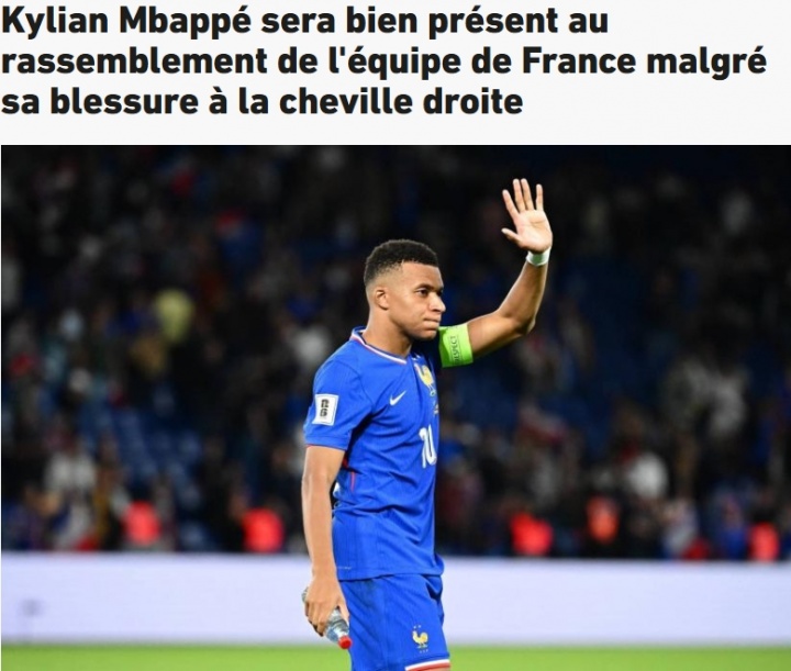 带伤出战?队报:姆巴佩本轮西甲扭伤脚踝,但仍坚合手去法国队报到