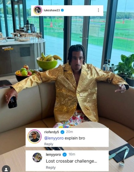 输的认罚!曼联后卫约罗磨真金不怕火中输掉横梁挑战,被动穿“奇装异服”