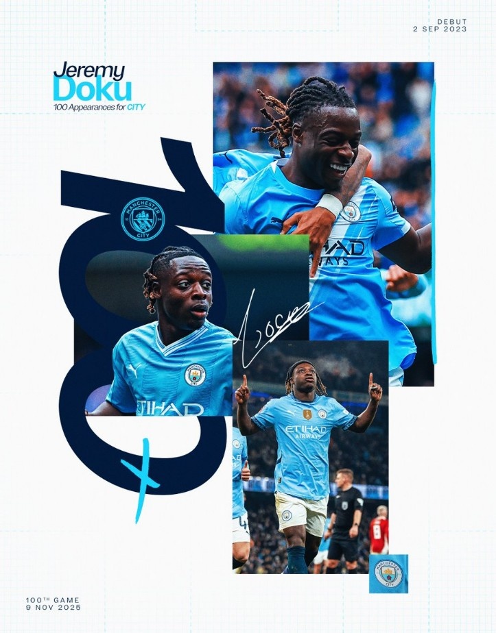 本场比赛亦然多库代表曼城第100次出场,此前的比赛中多库曾为球队孝顺16球24助攻。