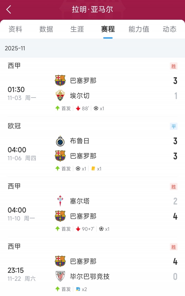 😳心中无女东说念主踢球当然神?亚马尔11月初离异,近4场3球2助