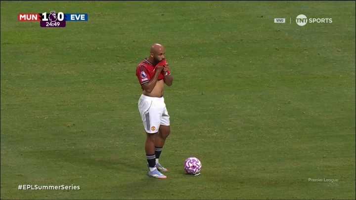 姆贝莫在季前赛代表曼联献艺首秀,比赛中他被镜头拍到掀翻球衣骄矜上半身,球迷也对他的身材发表了热议。