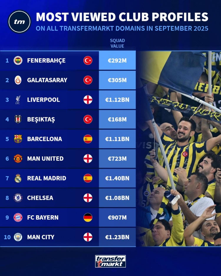 德转球员页面9月浏览量排行:C罗居首,埃德森第二、梅西第七