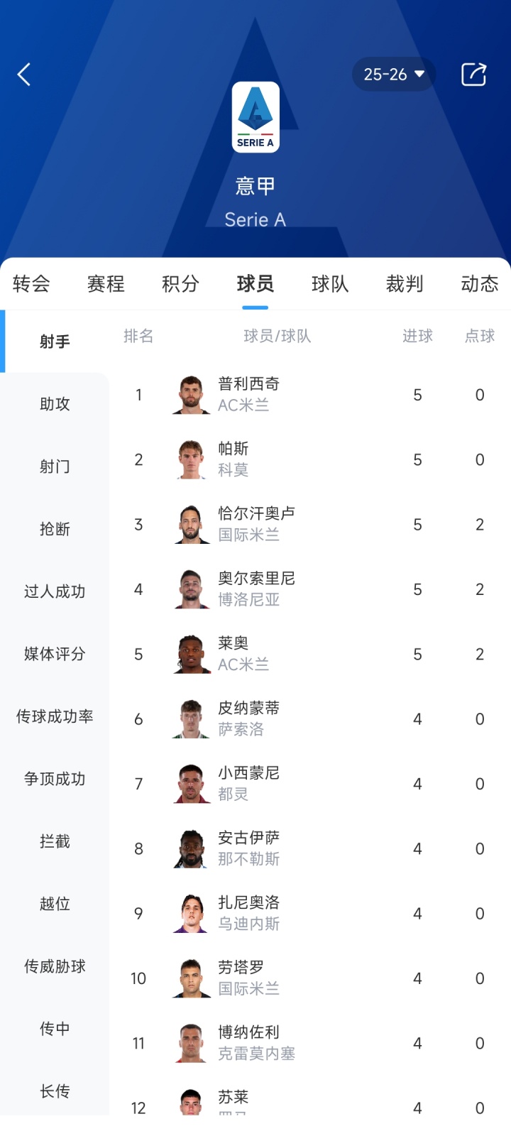 意甲弓手榜:竞争强烈枯竭爆点,5东谈主5球问鼎华夏