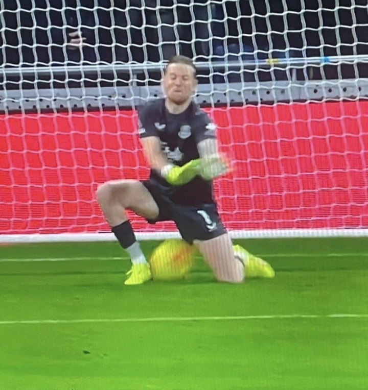 英超第13轮,埃弗顿主场1-4惨败纽卡斯尔联。比赛第25分钟,皮克福德扑救失实导致丢球。