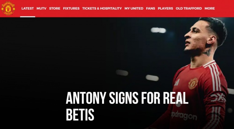 转会贝蒂斯!曼联官方告别安东尼:俱乐部全员祝他过去一切告成