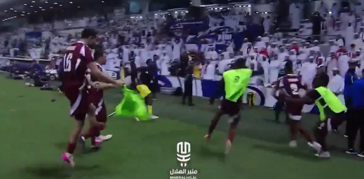 比赛第73分钟,卡塔尔打进第2球2-0向上,在场边的卡塔尔球员凯旋向阿联酋球迷舞蹈寻衅。