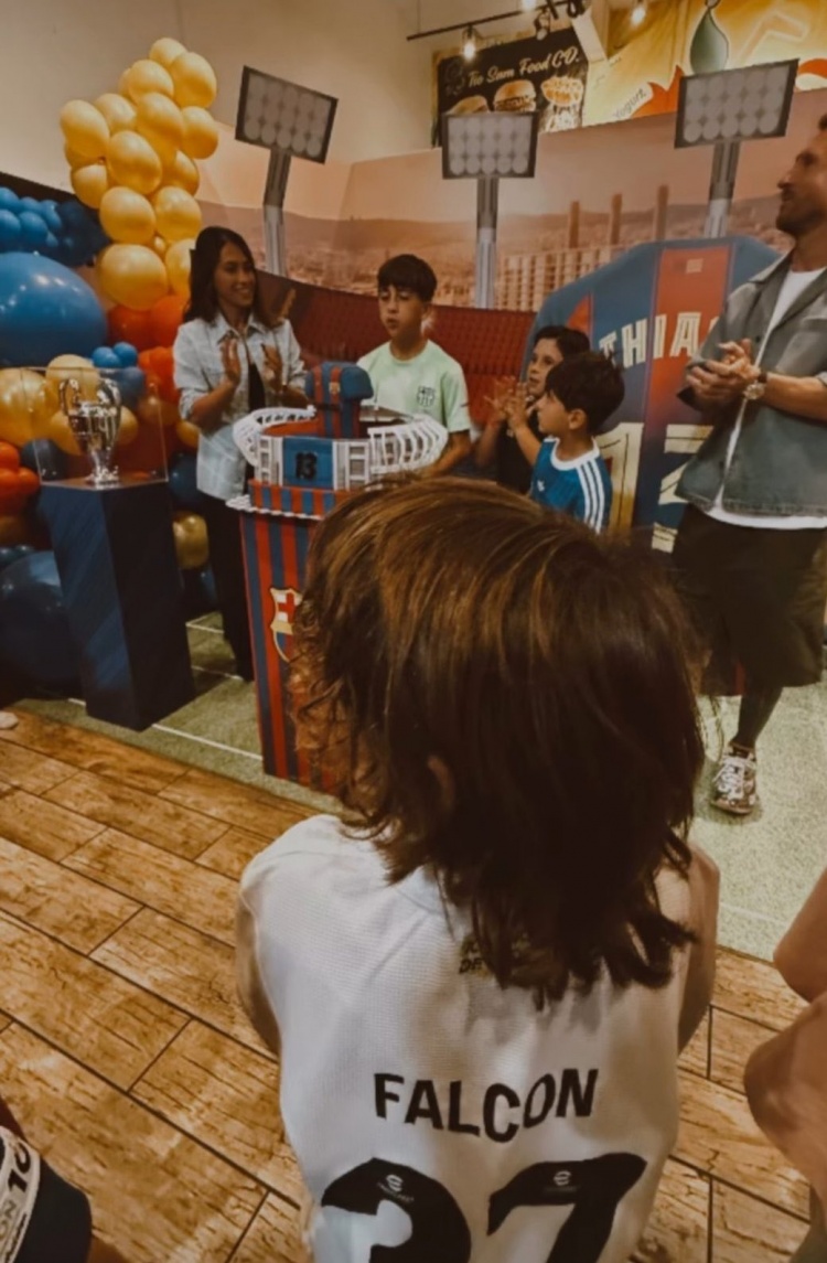 从网高尚传的相片来看,梅西一家举办了巴萨主题派对,为蒂亚戈庆祝13岁寿辰。