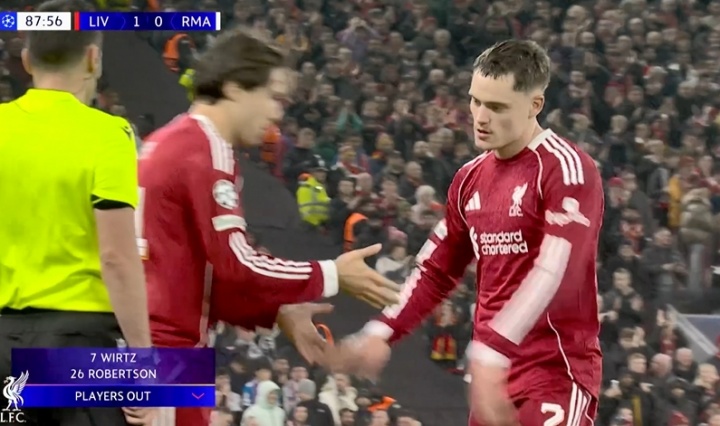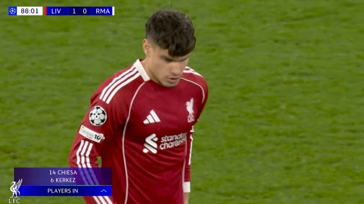 11月05日讯 欧冠第4轮利物浦vs皇马第89分钟,利物浦再次作念出2个换东说念主调理,维尔茨、罗伯逊被换下,凯尔凯兹、基耶萨替补登场。