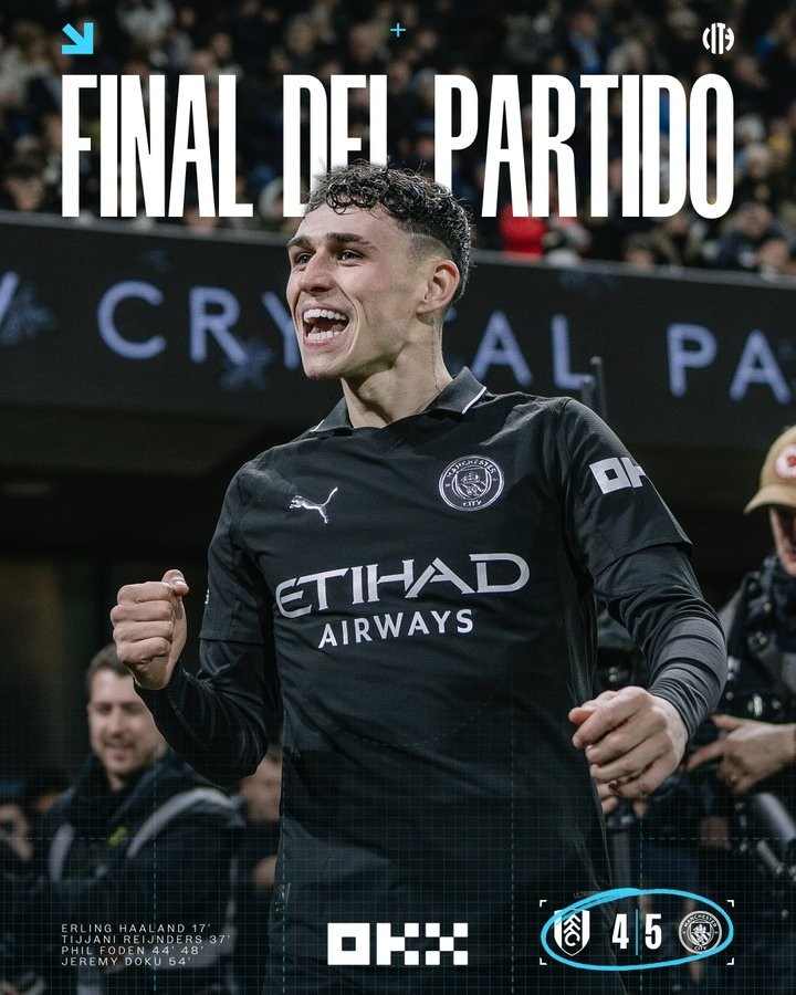 曼城近16次英超对富勒姆全胜,亦然联赛历史大肆两队对战最长连胜