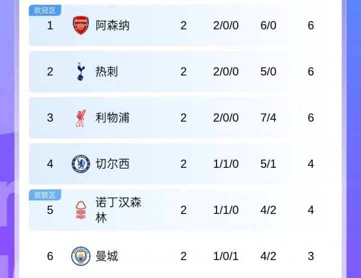 08月27日讯 英超2轮战罢,现存3支球队全胜,阿森纳、热刺和利物浦分列前三。4/5/6名分袂是切尔西、丛林和曼城。