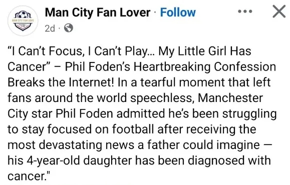 据悉第一条谎话出咫尺Facebook上,诞妄地宣称福登的大犬子、6岁的鲁尼仍是离世。而又名网名为“曼城球迷怜爱者”的造谣者还发帖,称福登4岁的女儿患有癌症。