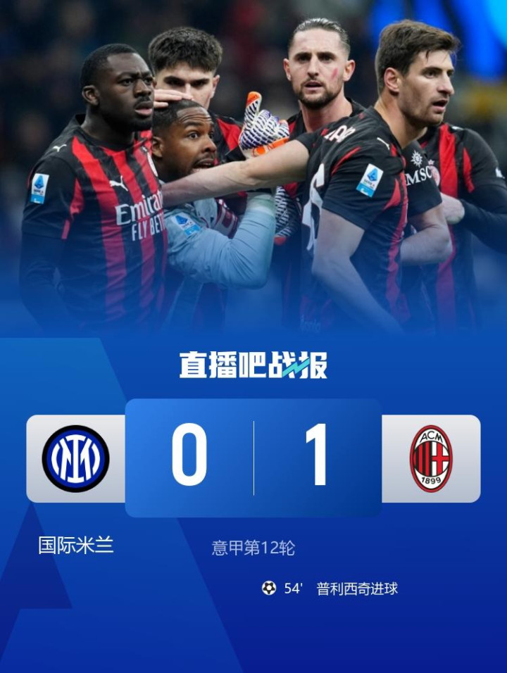 意甲第12轮,米兰1-0驯顺国米笑傲米兰德比,至此米兰也曾已毕6场德比不败,同期完结了敌手的各赛事4连胜。