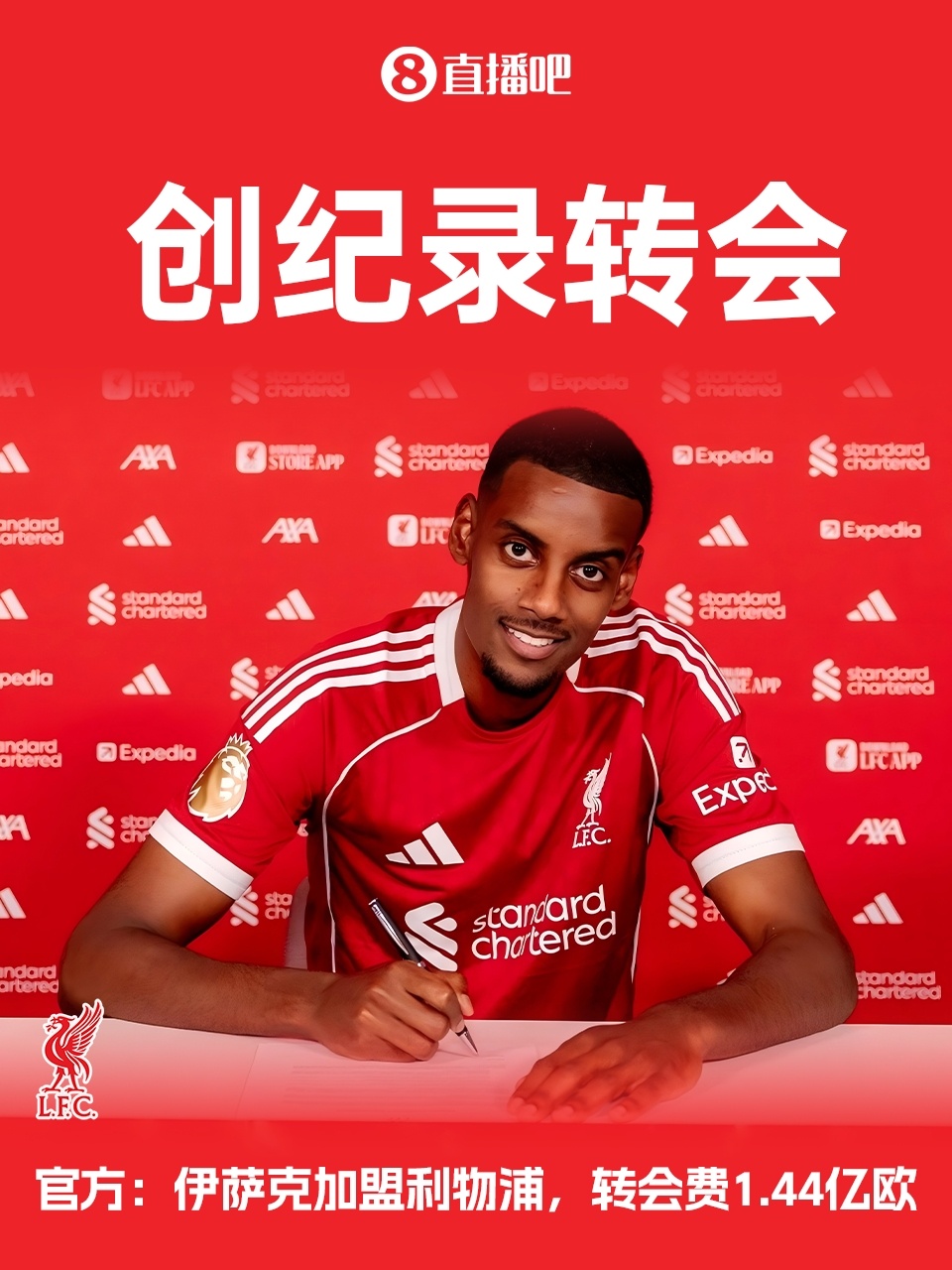 夏窗标王!官方:利物浦签下伊萨克,转会费1.44亿欧再破英超记载