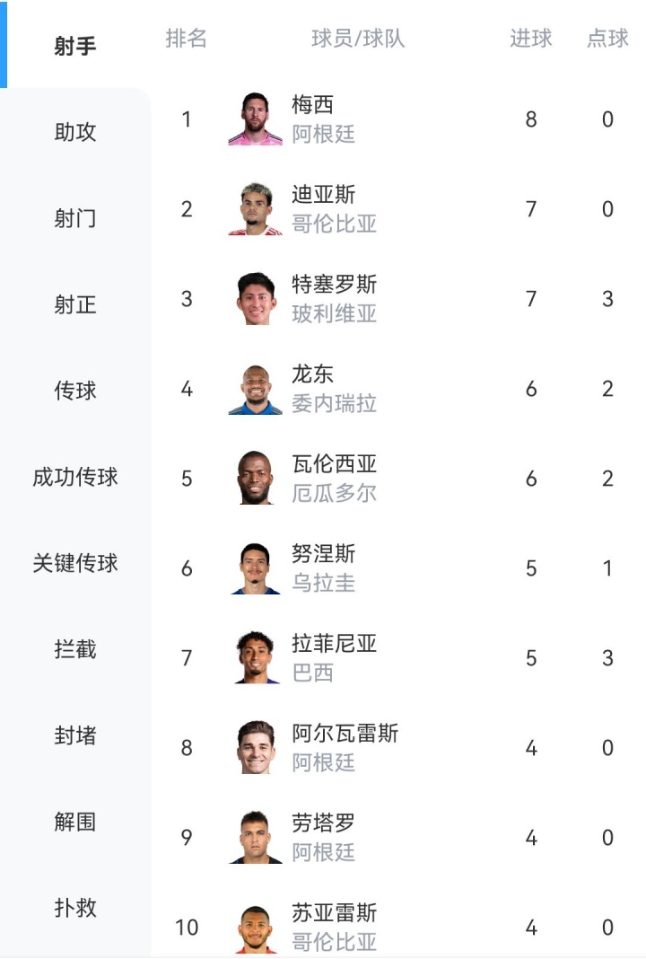 球员方面,梅西以8球荣获南好意思世初赛弓手王,J罗则是助攻王。